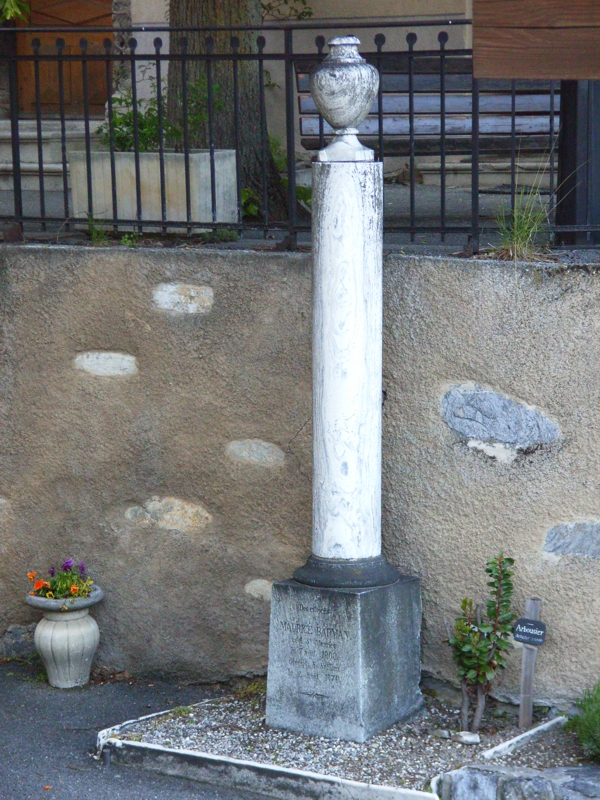 Das säulenförmige Denkmal für einen früheren Staatsrat und Politiker Maurice Barman (1808-1878) besteht aus drei Teilen, dem Sockel, einem Säulenkörper und die ihm aufgesetzte symbolische Aschenurne (Bild unten). Die Urne steht für eine antiklerikale Aussage. Die Säule besteht aus dem Cipollinmarmor von Saillon. Ihr Sockel wurde aus der dunkelgrün gebänderten Sortierung "Vert moderne" gefertigt. Das Denkmal wurde im April 1879 unter großer öffentlicher Beteiligung eingeweiht.
