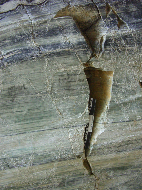 Alter / Lithologie: Saillon-Marmor; nachträglich tektonisch verformte Kalksteine der Kreide, metamorphe Überprägung und Auswalzung zu einer geringmächtigen Schichtenfolge von verschiedenfarbigen Marmoren in der Morclesdecke. Nach D. Decrouez, A. Ebert und K. Ramseyer (In: H. Thurre, 2009) ist die zeitlich Bestimmung der tektonischen Verformung sehr schwierig und soll zwischen dem unteren Oligozän (32 Mio.) und mittleren Miozän (13 Mio.) gelegen haben.