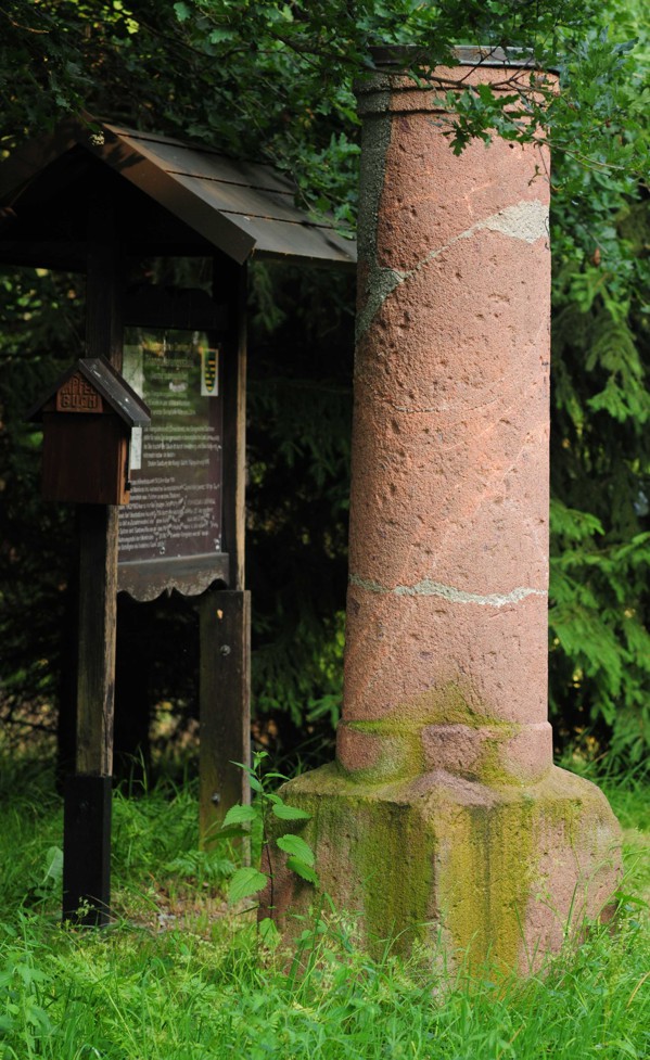 Bei der Materialauswahl für diese drei Säulen hat man sich für Rochlitzer Porphyrtuff entschieden.