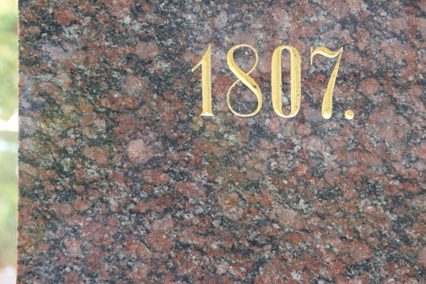 Hinweis: Der ursprünglich als Bohus-Granit einstufte Naturwerkstein des Sockels wird nach einem Hinweis