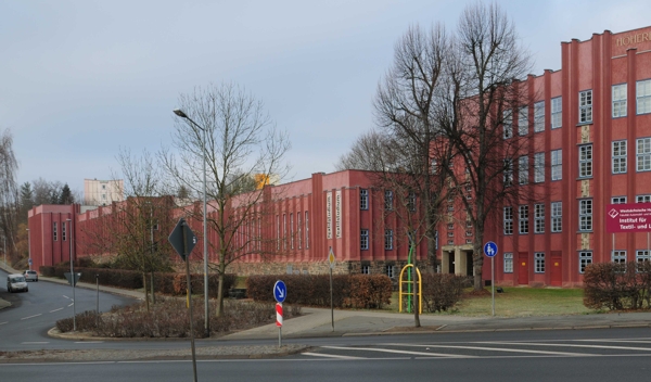 Der Gebäudekomplex der Textilfachschule in Reichenbach i.V. eröffnet einen Blickwinkel auf die