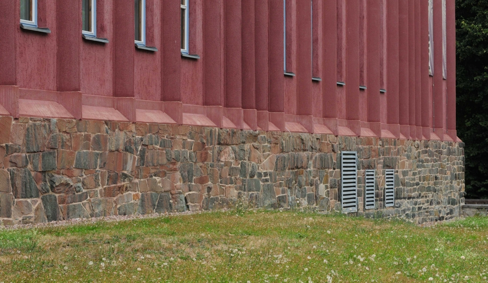 „Der rostrote, ruhig wirkende, einheitliche Fassadenputz über dem lebhaften heimischen Grünsteinsockel, …“. Die damalige Baubeschreibung zeugt von einer gewollten