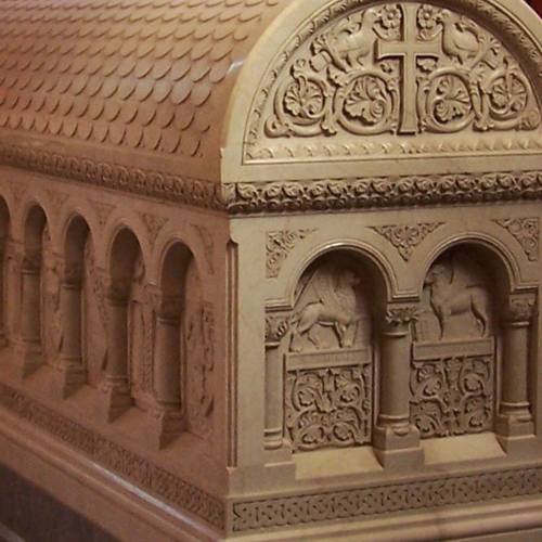 Abb. 4: Detail aus dem Sarkophag aus Botticino-Kalkstein.
