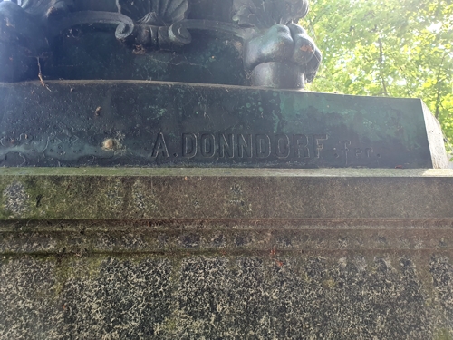 Hergestellt wurde der Granitsockel von einem in der zweiten Hälfte des 19. Jahrhunderts überregional bedeutendsten Steinmetzunternehmen, der Berliner Granitschleiferei Kessel & Röhl. Dies geht aus der Inschrift auf der Vorderseite des Denkmals hervor (ganz unten; auf dem Bild der Abb. 3 hinter der Blumenschale verborgen):