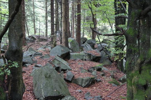 Abb. 8: Abraum am Rande eines ehemaligen Proterobasbruches am Ochsenkopf (Fichtelgebirge).