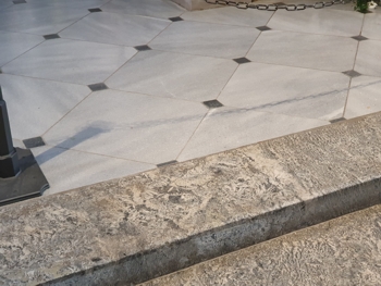 Abb. 10: Grabplatte aus Adneter Kalkstein (innen), Pinolithmagnesit (Umrandung) und Marmor (Bodenplatten). Zum Vergrößern ins Bild klicken.