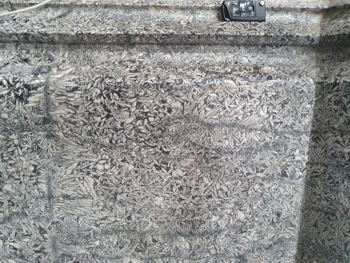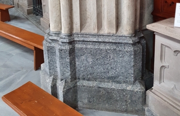 Abb. 9: Nicht bestimmter Naturwerkstein als Abdeckung auf einer Balustrade zu einer Seitenkapelle.
