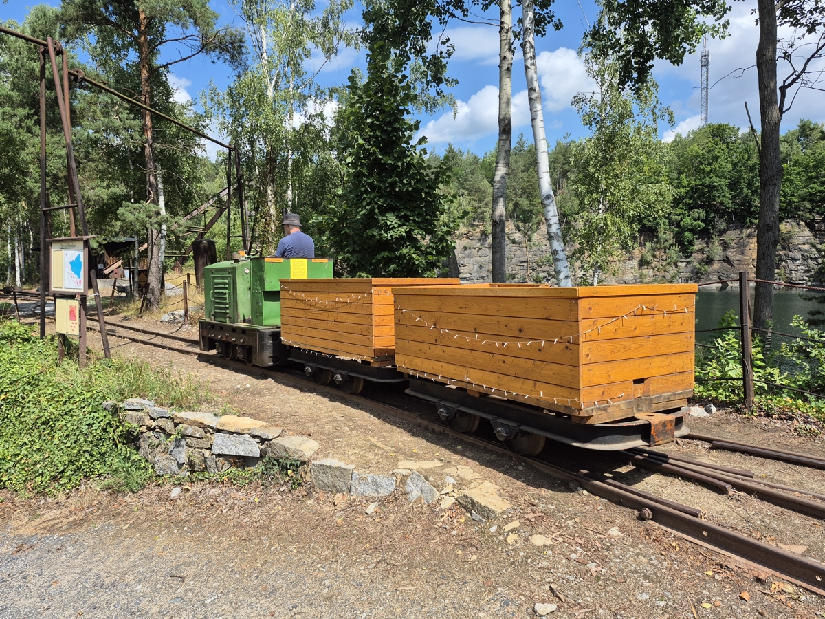 aufgelassenen Granodioritsteinbruch mit großem Engagement technische Anlagen und Gerätschaften aus anderen Steinbrüchen verbracht und funktionsfähig wiederaufgebaut.