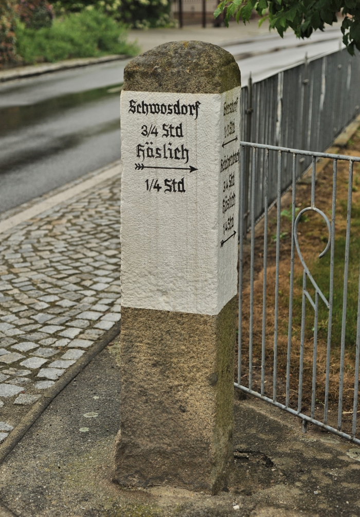 Abb. 7: Haselbachtal, Wegweiser nach Häslich