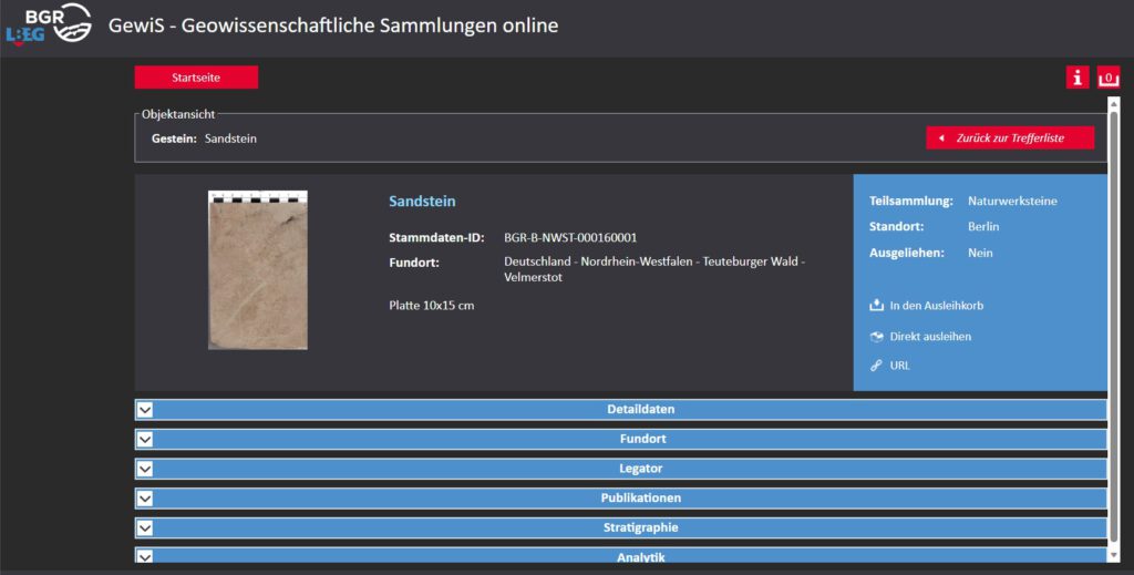 Abb. 8. Screenshot der Online-Datenbank der Naturwerksteinsammlung der BGR. Erreichbar unter https://gewis.bgr.de.